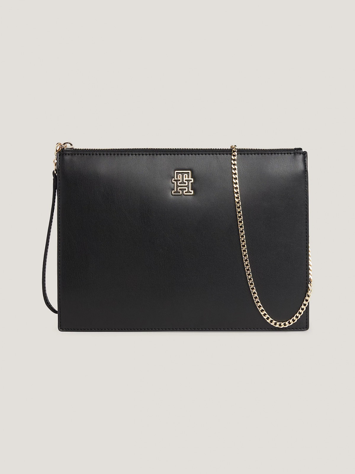 Finesse et élégance sont au rendez-vous, grâce à sa finition lisse, sa bandoulière en chaîne dorée et sa plaque monogramme Tommy Hilfiger qui apporte du relief. Dotée d'une fermeture éclair et de multiples fentes intérieures pour y mettre vos cartes, vous ferez fureur lors de vos soirées habillées avec cette pochette !